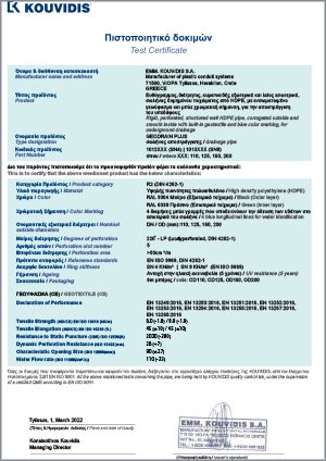 | Ακαμψία δακτυλίου (EN ISO 9969) | SN4 | SN8 |