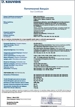 Διαμορφώσιμος σωλήνας GEODRAIN PLUS – Πιστοποιητικό δοκιμών