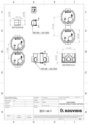 Τα κουτιά διακόπτη έχουν σχεδιαστεί για διακόπτες μονού πλαισίου. Παράγονται από κορυφαίας ποιότητας πλαστικές πρώτες ύλες και εξασφαλίζουν την απαιτούμενη ασφάλεια στις χωνευτές ηλεκτρικές εγκαταστάσεις.