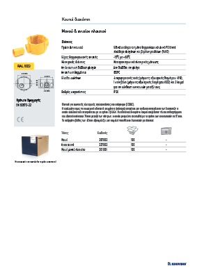 | Αριθμός οπών | 4 περιφερειακές οπές (μέγιστης εξωτερικής διαμέτρου Ø18), 1 στην βάση (μέγιστης εξωτερικής διαμέτρου Ø22) και 2 λαιμοί για την σύνδεση των κουτιών μεταξύ τους |