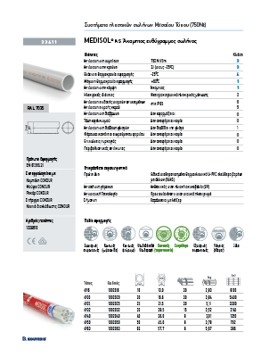 Ο σωλήνας MEDISOL αποτελεί ουσιαστικά το μικρό «αδελφάκι» του σωλήνα CONDUR. Παράγεται από εφάμιλλης υψηλής ποιότητας πλαστικές πρώτες ύλες επιτυγχάνοντας μηχανικές επιδόσεις όπως η αντοχή στη κρούση (2J) σε εξίσου χαμηλές θερμοκρασίες (-25οC) που εξασφαλίζουν την ασφάλεια στην ηλεκτρολογική εγκατάσταση. Αποτελεί μέρος του συστήματος σωλήνων για την προστασία και διαχείριση αγωγών MEDISOL – MEDIFLEX και συνδέεται με όλα τα εξαρτήματα CONDUR (καμπύλες, μούφες, κολάρα, ρακόρ και κουτιά διακλάδωσης).